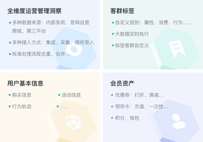涵盖商品、门店、活动资源、交互行为、偏好预测的标签体系,可支撑对用户进行细分、洞察,制定更精准的营销策略。
