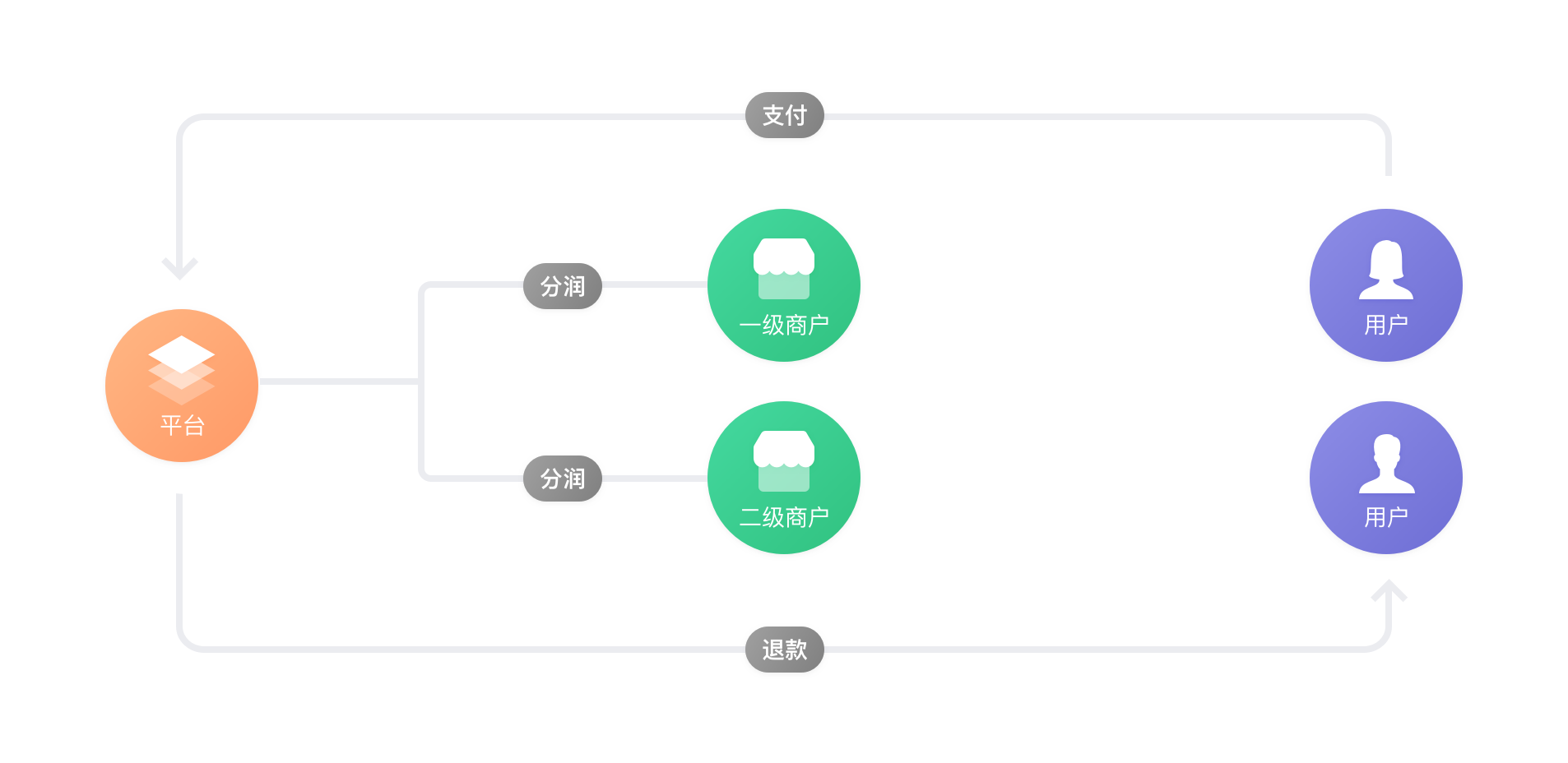 提供针对平台、代理、分销形态的分润模型和全面开放的分润 API,你可以根据自身业务形态自由选择,轻松实现不同场景下的高效分润